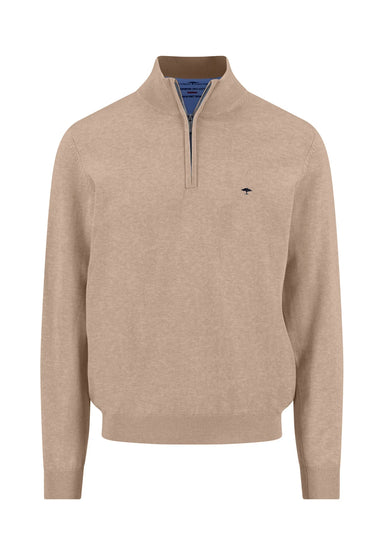 Tyylikäs ja kevyt vetoketjukauluksellinen puuvillaneule miehille, saksalaiselta laatumerkiltä Fynch-Hatton. Värinä hieman meleerattu vaalea beige....