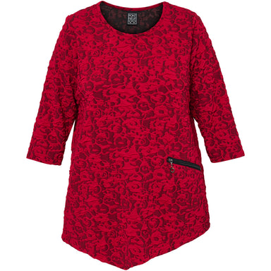Kaunis punainen joustava tunika Pont Neufilta. Pyöreä pääntie ja väljät 3/4-pituiset hihat. Edessä on vasemmalla puolella alhaalla mustalla vetoke...