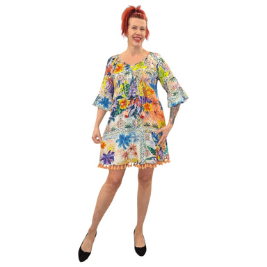 Kaunis, ihanan värikäs kesämekko australialaiselta merkiltä Orientique. Sopii niin lomalle kuin kesäjuhliinkin! Kankaassa on kukkakuviota kaikissa...