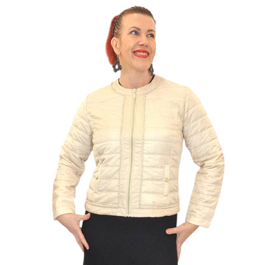 Kaunis kevyt tikkijakku tanskalaiselta Michalta. Tässä shampanjan sävyisessä jakussa on ihanat helmikoristelut. Jakussa on pyöreä pääntie ja kullan...