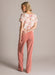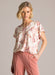 Pääntienä on reiluhko v-aukko. Raglanhihojen suissa on käänteet ja puseron helmassa on kuminauha. Gieltjessa on kerman värisellä pohjalla kauniita kukka-aiheisia kuvioita hempeillä puuteriväreillä, kuten vanhalla roosalla ja beigellä.