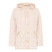 Takissa on irrotettava huppu ja kullan värinen vetoketju. Vetoketjun edessä on tuulisuojakaitale ja siinä kullan väriset nepparit. Edessä vetoketjulliset taskut ja sivuilla halkiot. Halkioissa on nepparikiinnitys. Takin yläosassa on poikkitikkaus ja se vaihtuu vyötäröltä alaspäin siksak-kuvioiseksi. Helma on hieman pyöristetty.