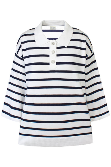 Hurmaava naisellinen, mutta samalla vähän sporttinen sinivalkoinen raitaneule Ze-Zeltä.Chitrassa on melko suora malli, leveähköt 3/4-hihat, sekä ha...