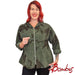 Sivusaumoissa taskut, sekä vetoketjukiinnitys. Olkasauma on laskettu, hihat ovat pitkät.