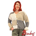 Neuletakki on kuin "itsekudottu". ja siinä on V-pääntie. Edessä on kauniit kullan väriset koristenapit. Hartialinja on laskettu ja hihansuussa on leveä kuminauha ja pyrri. Neuloksessa on isot eriväriset alueet. Väreinä on harmaata, beigeä ja luonnonvaaleaa.