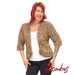 Neulejakku on avomallinen ja siinä on puolipitkät hihat. Edessä alhaalla on pienet taskut. Jakku on helmineuletta ja siinä vaihtelee ruskean erisävyt. Seassa on myös pieniä kimaltavia paljetteja antamaan ihanaa juhlavuutta.
