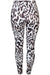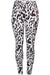 Leggingseissä on leveä kuminauhavyötärö ja reisitaskut. Luonnonvalkoisella pohja, eläinkuosia.