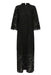 Mekossa on pystykaulus ja 3/4-mittaiset kaunii, läpikuultavat pitsihihat. Hihansuussa on erillinen pitsikaitale. Helmassa on molemmilla puolilla pitkät halkiot. Pitsikuosissa on isoja kukkukuvioita. Alusmekko on lyhyt, yltää sivuhalkioihin asti.