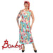 V-pääntie edessä ja takana.. Mekko on hihaton, ja siinä on hieman alaspäin levenevä helma. Takana helmassa halkio.