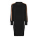 Olkapäillä on kauniit, kultaiset koristenapit, ja olkapäiltä lähtee myös joustinneuloksesta olevat vaalean konjakinväriset raidat hihoihin.
