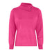 Upean fuksian värisessä neuleessa on kauluksessa ja toisella olkapäällä hopean värisiä pieniä koristenappeja.