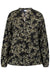 Puserossa on mustalla pohjalla kukkasia, joissa on vihreää ja luonnonvalkeaa.